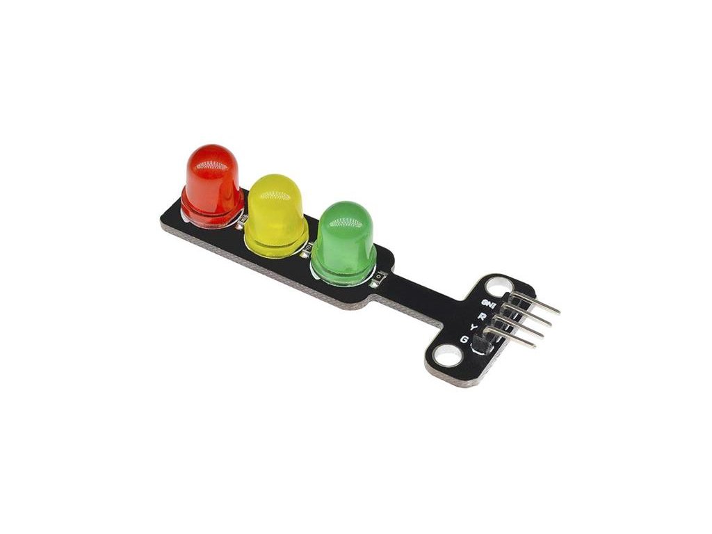 LED modul semaforu so spoločnou katódou a napájaním 5V. LED sú pripojené cez ochranný rezistor, takže je možné modul pripojiť priamo k pinom Arduina.
