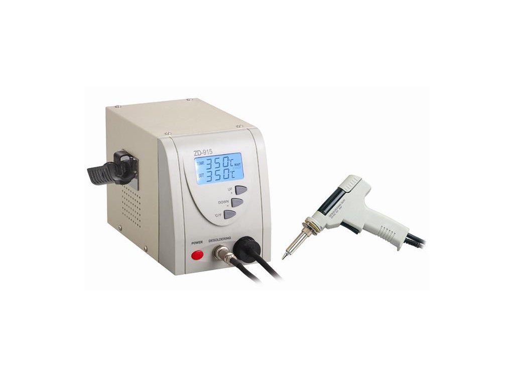 Odpájkovacia stanica ZD-915Odspájkovacia stanica ZD-915 je navrhnutá špeciálne pre bezolovnaté odspájkovanie. Vďaka rýchlemu zahriatiu a vysokému výkonu je táto stanica vhodná pre čisté odspájkovanie všetkých typov komponentov tlačených spojov. Vďaka šikovne navrhnutej štruktúre, obsluhe jednou rukou a vysokému výkonu možno ľahko odstrániť (odsať) spájku z jedno alebo obojstranných tlačených spojov. Táto odspájkovacie stanice s odsávačkou sa používa v oblasti elektronického výskumu, výučby a výroby, predovšetkým pri opravách elektronických prístrojov a komunikačných zariadení.