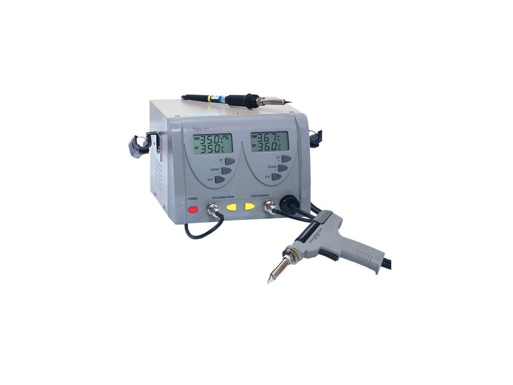 Spájkovacia / Odspájkovacia stanica ZD-917Vysoko výkonná multifunkčná (spájkovacia / odspájkovacia) stanica ZD-917 je vyvinutá a vyrobená pre výskum, výrobu a opravy elektronických výrobkov a je prispôsobená pre bezolovnaté spájkovanie a odspájkovanie. Tento prístroj sa používa v oblasti elektronického výskumu, výučby a výroby, predovšetkým pri opravách a prerábkach elektronických prístrojov a komunikačných zariadení. Vďaka rýchlemu zahriatiu a vysokému výkonu je táto stanica vhodná pre čisté odspájkovanie všetkých typov komponentov tlačených spojov. Vďaka múdro navrhnutej štruktúre, obsluhe jednou rukou a vysokému výkonu možno ľahko odstrániť (odsať) spájku z jedno alebo obojstranných tlačených spojov. Táto odspájkovacia stanica s odsávačkou sa používa v oblasti elektronického výskumu, výučby a výroby, predovšetkým pri opravách elektronických prístrojov a komunikačných zariadení.