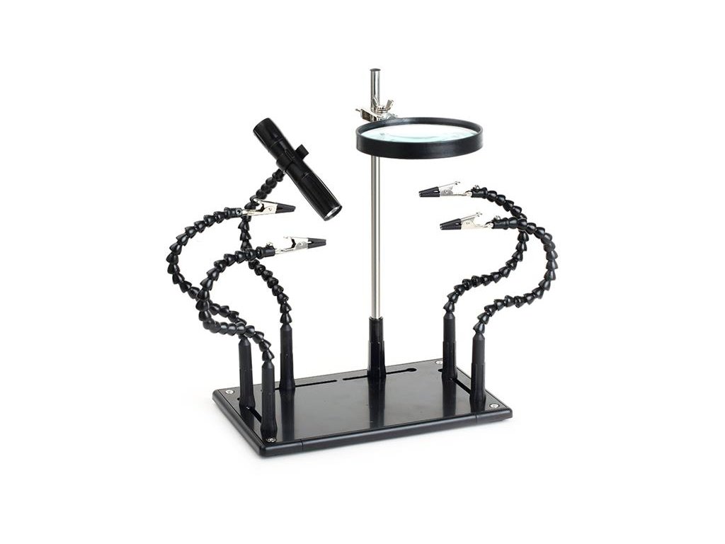 - obsahuje 5 nastaviteľných ramien ( pomocné ruky) , svorku a svietidlo