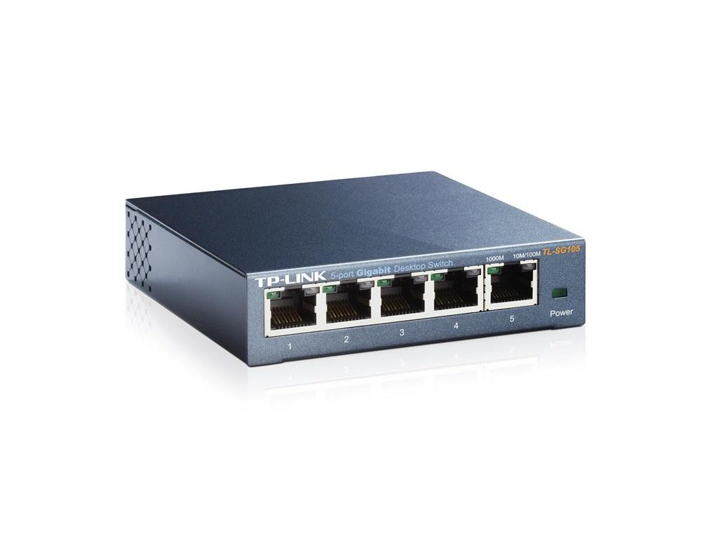 TP-Link TL-SG105 je vysokorýchlostné gigabitový stolný switch v kovovom tele, ktorý je ideálnym riešením pre pracovné skupiny. Obsahuje 5x 10/100 / 1000BASE-T gigabitový Ethernet port s AUTO-MDIX s maximálnou rýchlosť 2000 Mbps vo full duplex móde a LED indikátory zobrazujú inštaláciu káblov a diagnostiku.