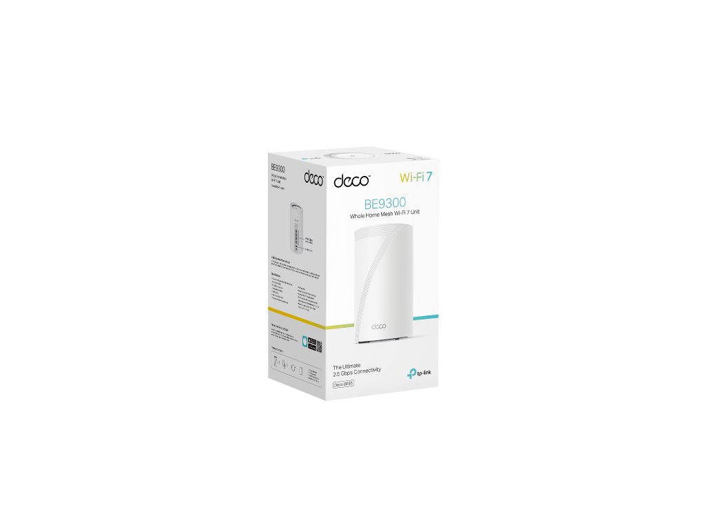 Deco BE65(1-pack) BE9300 Whole Home Mesh WiFi 7 systém - 9214 Mbps trojpásmová WiFi - 5760Mbps (6 GHz) + 2880 Mbps (5 GHz) +574 Mbps (2,4 GHz).Káblové pripojenia 2,5 Gbps - 4 × 2,5 Gbps porty zaisťujú maximálnu flexibilitu a zvýšenú priepustnosť. Bezdrôtový a káblový kombinovaný backhaul - Spája bezdrôtový a káblový backhaul s každou jednotkou súčasne, aby sa zlepšila celková priepustnosť a znížila sa latencia. Multi-Link Operation (MLO) - súčasne odosielajte a prijímajte dáta v rôznych pásmach a kanáloch, aby ste zvýšili priepustnosť, znížili latenciu a zlepšili spoľahlivosť. 320 MHz kanály - Zdvojnásobte šírku pásma a umožňujú oveľa viac súčasných prenosov pri najvyšších možných rýchlostiach. Pracuje v pásme 6 GHz - Minimalizuje preťaženie so spektrom na zelenej lúke a poskytuje robustné vysokorýchlostné pripojenia. TP-Link HomeShield - Poskytuje komplexnú sieťovú ochranu, robustnú rodičovskú kontrolu a zabezpečenie internetu vecí v reálnom čase. Univerzálna kompatibilita - Spätne kompatibilná so všetkými generáciami WiFi a funguje s akýmkoľvek poskytovateľom internetových služieb (ISP) a modemom.