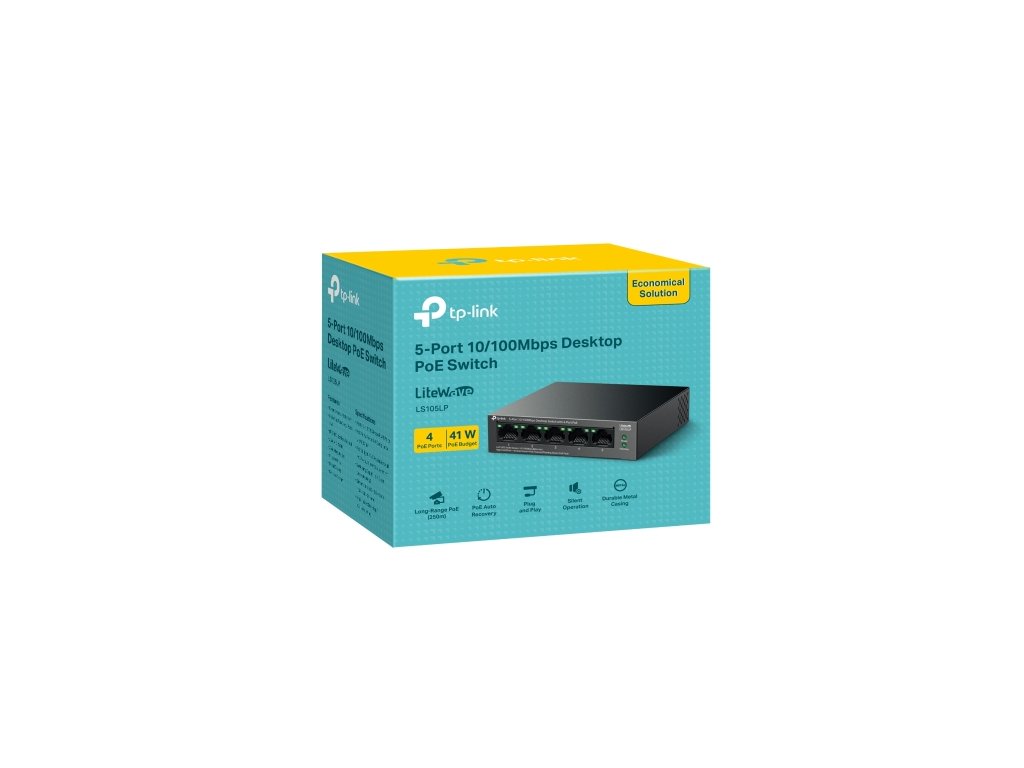 LS105LP 5 portový 10/100Mbit/s stolný switch so 4 portami PoE, Funkcia PoE s rozpočtom napájania 41 W, Štyri porty PoE 10/100 Mbit/s kompatibilné so štandardom 802.3af umožňujú jednoduché pripojenie a napájanieDodatočné parametre