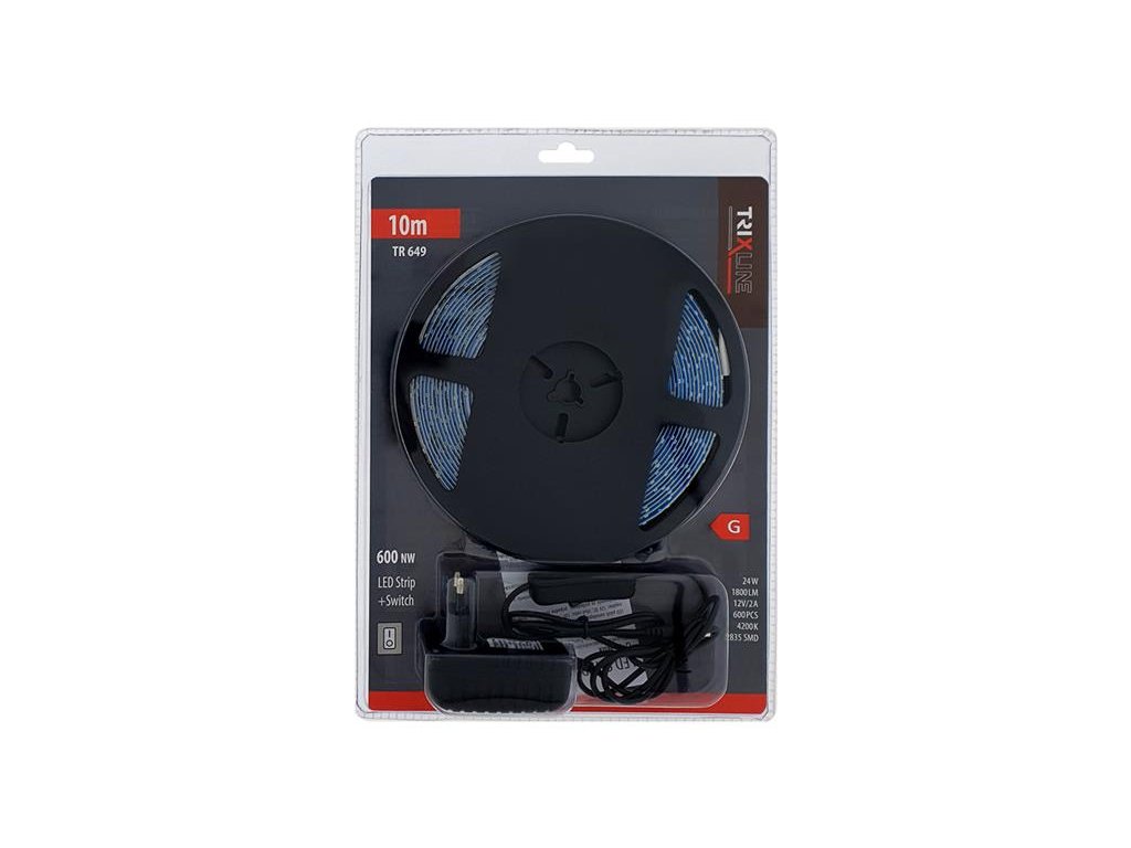 LED pásik TR 649 Trixline s vypínačom vytvára jedinečnú atmosféru interiéru spálne, obývacej izby, jedálne, kuchyne, pracovne, detskej izby, chodby atď. Led pásik je 10m dlhý, tvorený energeticky úspornými LED diódami v neutrálnej bielej farbe jednoduchú inštaláciu. Vhodný na efektívne podsvietenie stropu, nábytku či stien.
