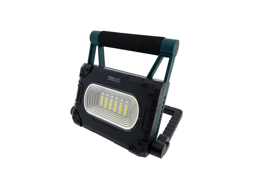 Výkonný 30W reflektor TR-226R Trixline na solárnu energiu s funkciou powerbanky, je možné nabiť aj cez Micro-USB kábel (súčasť balenia). Odolný voči striekajúcej vode krytie IPX4.