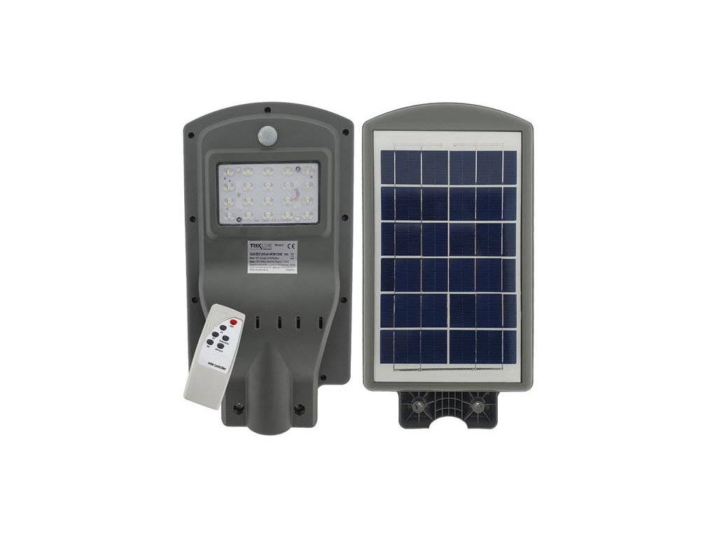 Solárna pouličná lampa TR 362S Trixline 10W s pohybovým senzorom na diaľkové ovládanie. Solárny panel je súčasťou zadnej strany svetla. Výhodou je krytie IP65 čo zaručuje ochranu proti tryskajúcej vode zo všetkých uhlov a odolnosť proti vniknutiu prachu. Vhodné na osvetlenie záhrady, chodníka rodinného domu alebo príjazdových ciest. Je dôležité, aby solárny panel bol vystavený priamemu slnku po celý deň, vyhnite sa natočeniu panelov k budovám, stromom a iným prekážkam.