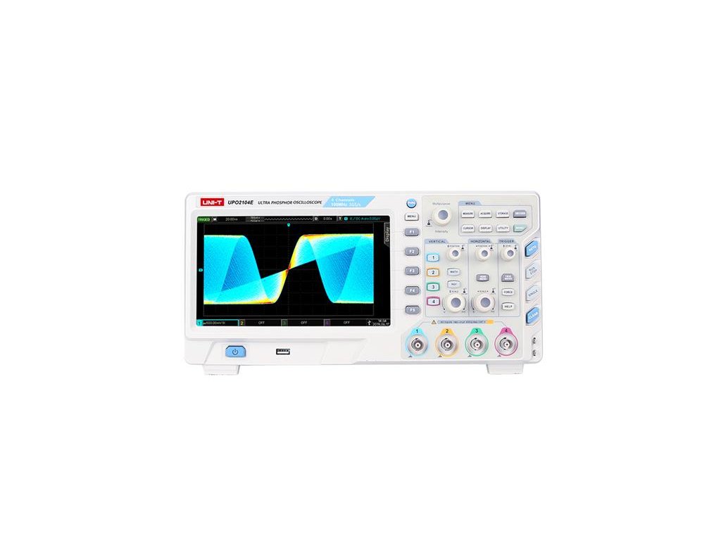 Osciloskop UNI-T UPO2104ENa tento výrobok poskytujeme 3 roky záruku. Osciloskop UPO2104E je stolný digitálny osciloskop s technológiou Ultra Phosphor zo série UPO2000E. Oproti nižšiu verziu UPO2102E ponúka 4 kanály. Ďalej je vybavený vzorkovaním 1 GS/s. To je bohato postačujúce pre šírku pásma, ktorá je 100 MHz (na rozdiel od nižších verzií UPO2072CS a UPO2074CS, ktoré sú len do 70 MHz). Je to multifunkčný, vysoko výkonný osciloskop, ktorý je ľahko ovládateľný s veľmi dobrými technickými špecifikáciami. Je vybavený displejom 800 x 480 pixelov. Podporuje USB úložiska a komunikáciu s PC pomocou funkcie Plug and play USB. Možnosť stiahnutia softvéru pre prepojenie s PC zo stránok výrobcu: