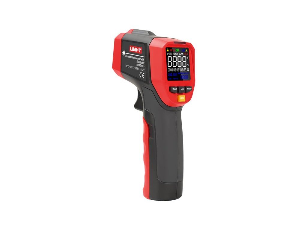 Teplomer bezkontaktný UNI-T UT301C+Na tento výrobok poskytujeme 3 roky záruku. Bezkontakný teplomer UT301C+ je odolný a ľahko použiteľný infračervený teplomer s vysokou presnosťou / energiou (95%) / opakovateľnosťou. Má nastaviteľný vizuálny/zvukový alarm s vysokou a nízkou teplotou, ktorý reaguje rýchlejšie ako 250 ms, čo vám pomôže rýchlo zistiť anomálie. Môžete prednastaviť a uložiť 5 sád hodnôt emisivity a rýchlo prepnúť emisivitu podľa rôznych povrchov, aby ste získali presnejšie výsledky. Vďaka meraniu zámku, pridržiavaniu MAX/MIN/AVG/DIFF a upevneniu na statív je UT301C+ ideálny pre procesy, ktoré vyžadujú sledovanie teploty. UT301C+ je možné použiť na kontrolu distribúcie energie / prepravné zariadenia, údržbu HVAC / vybavenie, riešenie problémov s vozidlami a ďalšie aplikácie. Farebný podsvietený displej EBTN. Možnosť upevniť na statív normalizovaným závitovým otvorom.