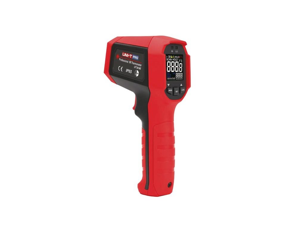 Profesionálne bezkontaktný infračervený teplomer UT309E (ďalej len teplomer) môže určiť povrchovú teplotu meraním infračervenej energie vyžarovanej cieľovým povrchom. UT309E môže merať teploty od -35 ° C do 850 ° C. Meranie v pomere (vzdialenosť: ploche) 20: 1. Je možno uložiť až 99 súborov dát a vykonávať plánované merania s maximálnym intervalom 96 hodín medzi dvoma meraniami. Tento teplomer má tiež krytie IP65 a vydrží pád až z 3 metrov. Duálny laser pre zameranie objektu. Nastavenie emisivity tepla meraného objektu podľa skutočnosti. Vysoko kontrastný farebný displej.