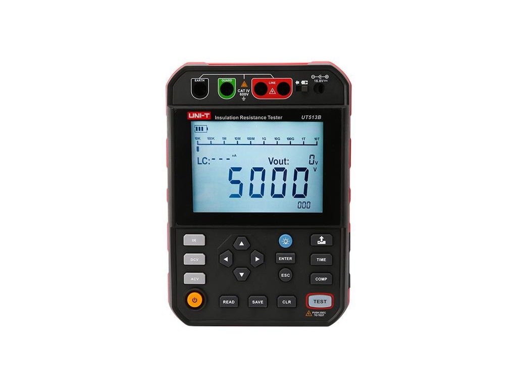 Na tento výrobok poskytujeme 3 roky záruku. Tester izolačného odporu UT513B 5 kV , je digitálny vysokonapäťový tester izolačného odporu, navrhnutý s niekoľkými rozsahmi vrátane 250 V, 500 V, 1000 V, 2500 V a 5000V. Je ideálnym meracím prístrojom pre oddelenie elektrickej energie, telekomunikácií, meteorológie, strojovne, ropného pole, elektromechanické inštalácie a údržby. průmyslových a ťažebních podnicích.