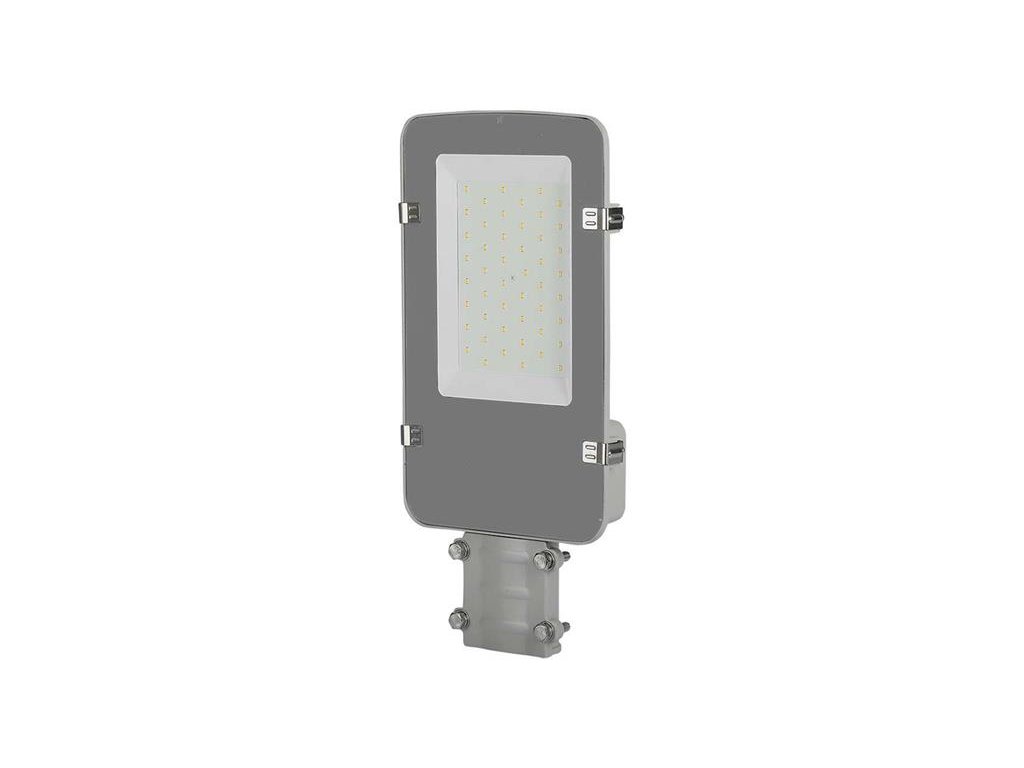 LED pouličné svetlo 30W-SAMSUNG Chip. Lampa je šedej farby a je odolná proti vlhkosti a vhodná na vonkajšie použitie.