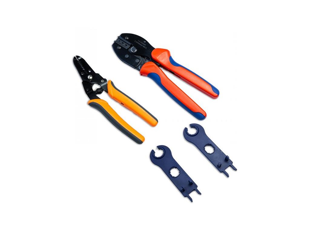 Sada náradia pre fotovoltaiku VOLT MC4 (krimpovacie kliešte, odizolovacie kliešte, kľúče).