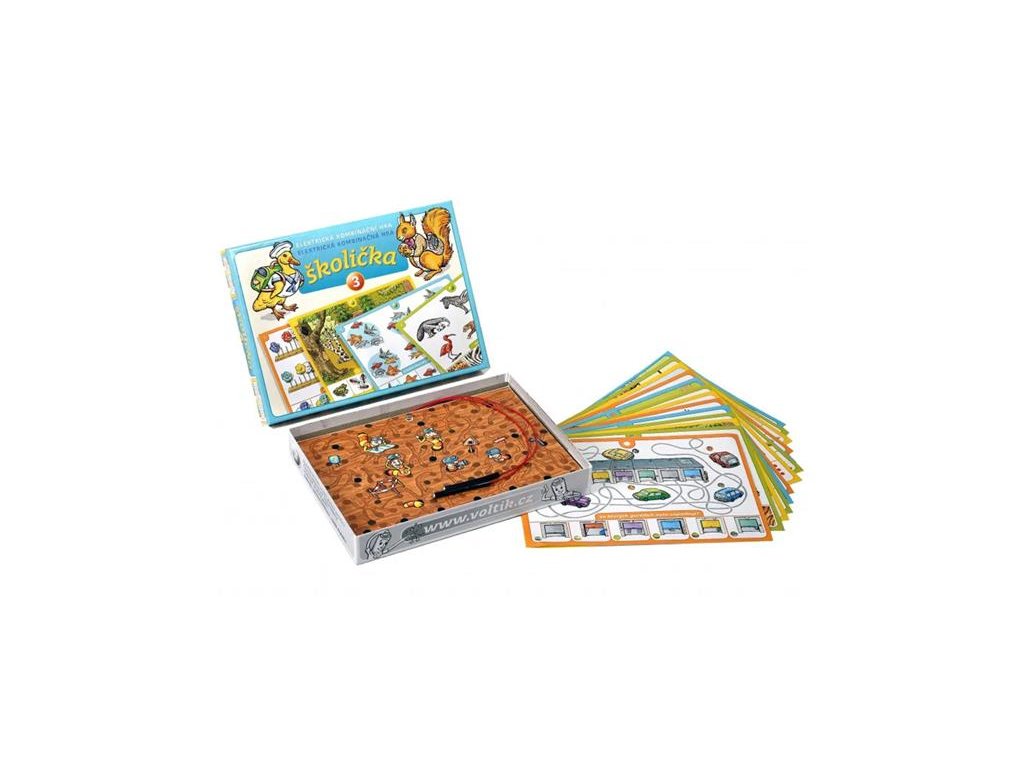 Hra vzdelávacia Školička 3Elektrická výuková hra pro děti od 4 let. Obsahuje 16 listů s mnoha obrázky, mezi nimiž děti hledají souvislosti. Správnost odpovědi signalizuje elektronický zkoušecí obvod rozsvícením zeleného světýlka. Hra učí děti všímat si vztahů a logických souvislostí mezi obrázky, porovnávat je a správně je k sobě přiřazovat. Hra je pokračováním oblíbené Školičky a Školičky 2, které již řadu let vyrábíme.