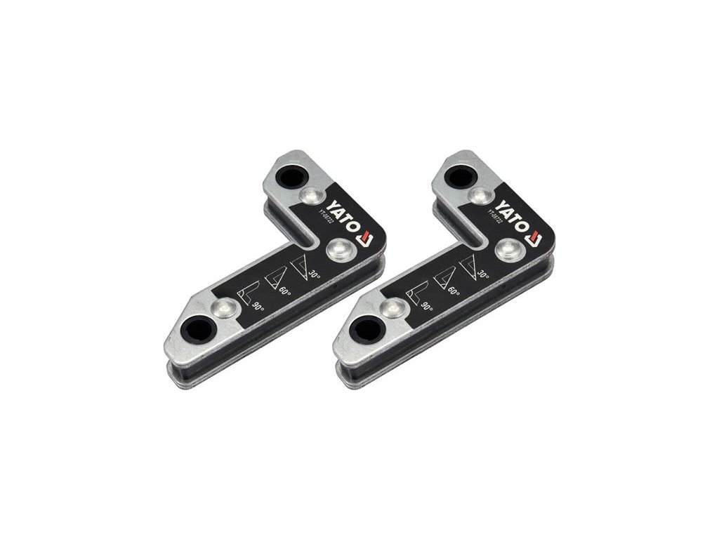 Magnetické držiaky zváračské 2ks YATO YT-08722 25kgSada 2 magnetických uholníkov používaných pre zváranie a montáž rôznych prvkov, napr. Plechov, upevňovacích prvkov, plochých tyčí, profilov, trubiek atď.