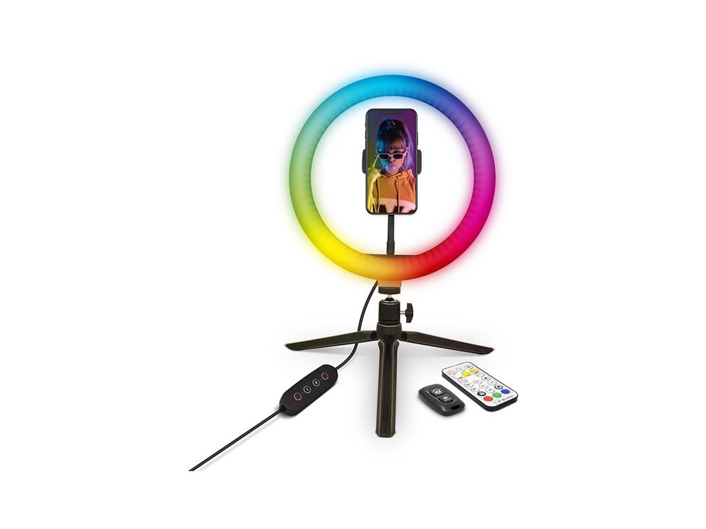 Natáčajte videá a streamujte na sociláních sieťach vo skvelej kvalite obrazu. Pomocou špeciálneho statívu a kruhového LED osvetlenie budete mať vždy výborné svetelné podmienky pre natáčanie, fotenie a streamovanie na populárnych soc. sietí ako je napr. TikTok. Na výber je až 29 farebných variantov podsvietenia. 3 základné odtiene bielej (studená, neutrálne, teplá), ktorá dodá vášmu projektu na profesionalite. 13 statických a 13 dynamických RGB farebných variantov podsvietenia pomôže dosiahnuť originálne scény pre stream, tvorbu fotiek a videí na populárne sociálne siti TikTok. Pre každú z 29 farebných variantov môžete nastaviť až 8 rôznych úrovní jasu a navodiť tak optimálne atmosféru pre natáčanie videa. Súčasťou balenia je diaľkový ovládač, ktorým LED osvetlenie zapnete / vypnete a ďalej volíte medzi základným osvetlením v podobe studená biela, neutrálna biela a teplá biela alebo medzi RGB osvlětlením, v ktorom máte na výber až 13 statických a 13 dynamických farebných variantov. Samozrejmosťou je možnosť nastavenia jasu. K dispozícii je tiež diaľková selfie spúšť, ktorú pripojíte pomocou Bluetooth k vášmu telefónu a môžete pořitovat snímky alebo videá priamo v akcii. Na napájacom kábli je fixná ovládací panel pre rýchlu manipuláciu s LED osvetlením. Ponúka rýchle funkcie ako zapnúť / vypnúť prípadne nastavenie jasu. Univerzálny držiak mobilného telefónu a LED kruhové osvetlenie je možné individuálny polohovať a otáčať o 360 °. Univerzálny držiak je vhodný pre mobilné telefóny až do šírky 80mm. Kruhové LED osvetlenie s priemerom 10 "" a nastaviteľný statív sú vhodné pre domáce aj profesionálne použitie. LED osvetlenie je napájané konektorom USB A a potrebuje minimálny výkon 10W.